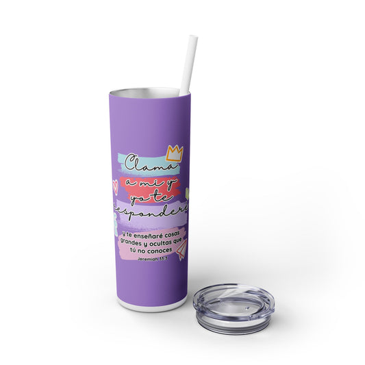 Jeremias 33:3 Tumbler with Straw - 20oz Purple Squared Design